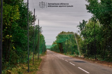 Міністр оборони України Денис Шмигаль під час роботи на Херсонщині заслухав доповідь голови Державної спеціальної служби транспорту щодо облаштування антидронового захисту на автомобільних дорогах області.
