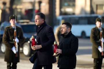 Президент України Володимир Зеленський і генеральний секретар НАТО Марк Рютте на Майдані Незалежності в Києві вшанували пам'ять загиблих українських захисників і захисниць.